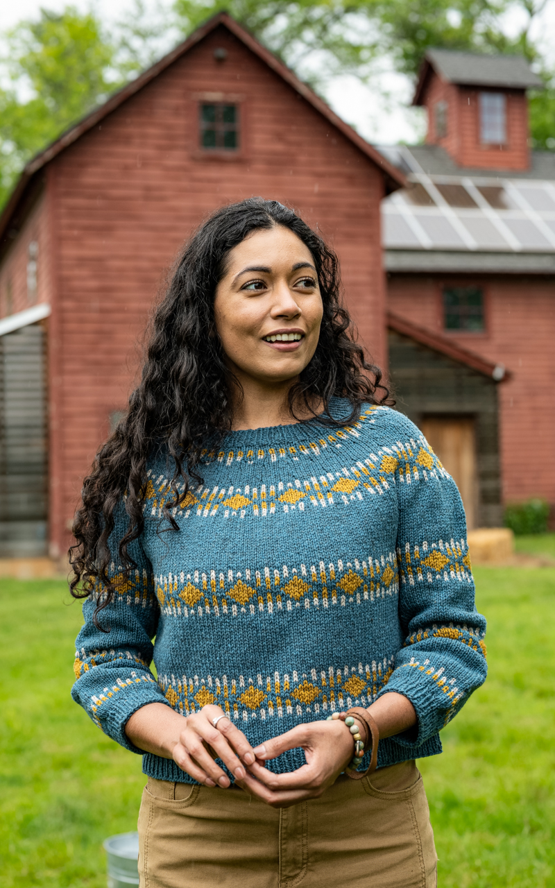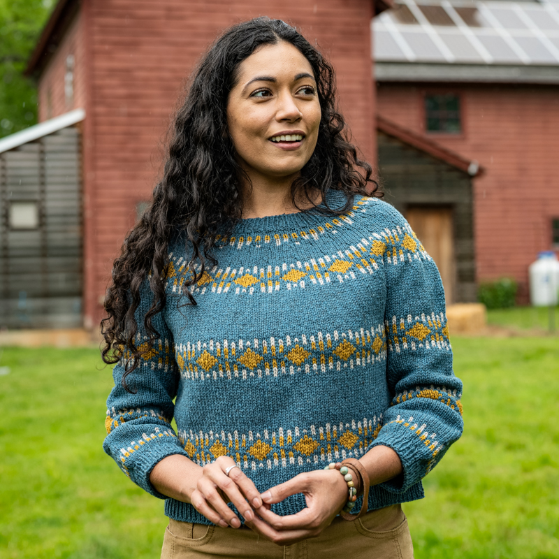 It’s the Amplitude Pullover by Julia Farwell-Clay (in Farm& Fiber Knits).