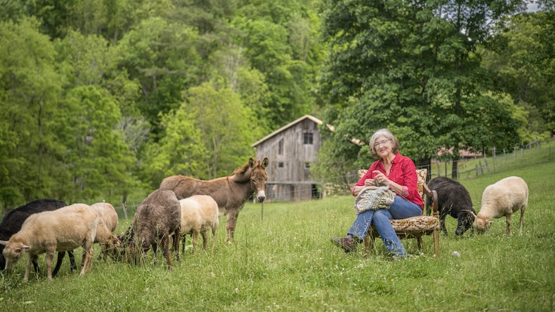 Barbara Kingsolver—yes, the Pulitzer Prize winner—is pictured in the header image, having her own knitting adventure with some beasts of rural Kentucky. Now would be a great time to listen to her Demon Copperhead, a loose re-telling of Charles Dickens’ David Copperfield. Not only is the story a gripping one, her words will take you to Appalachia, if only in your mind’s eye.