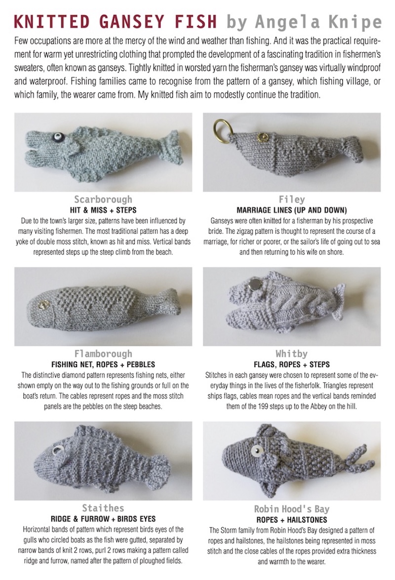 The first time I ever heard the word “gansey,” I was looking at a tiny knitted fish smaller than my hand.