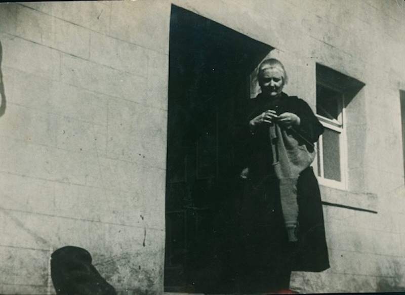 Portrait of Isabella Wood knitting or re-sleeving a gansey, c.1920-39. ORIGINAL IMAGE FROM ISABELLA SIMPSON, East Lothian, Scotland.
