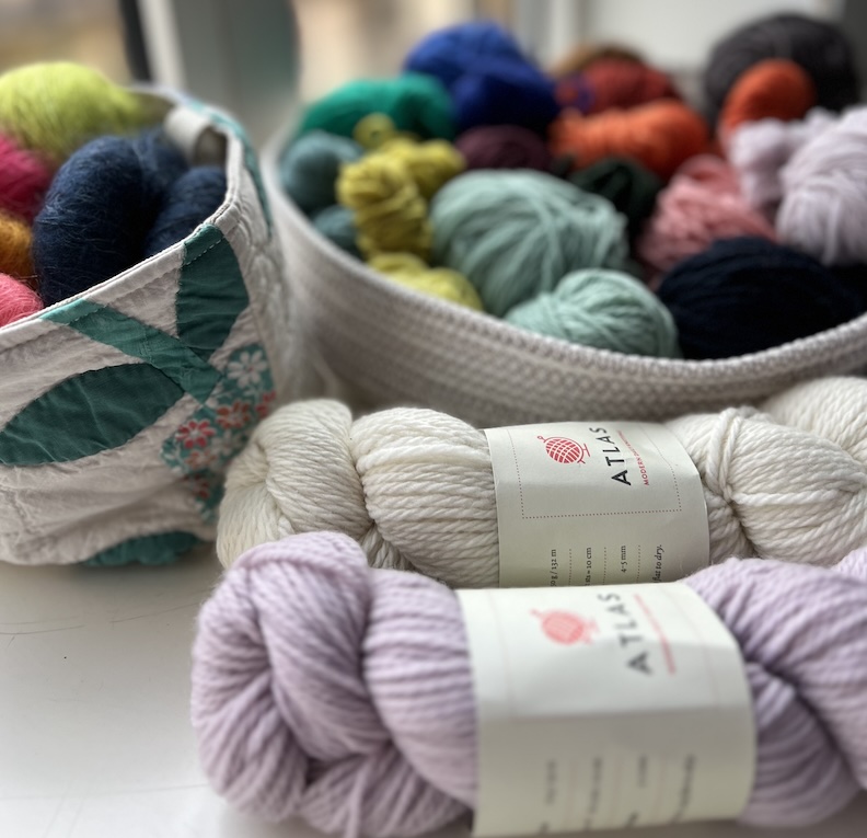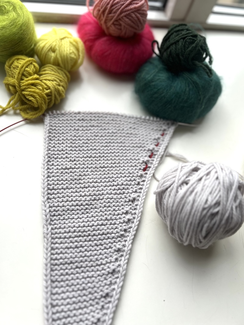 Wow, that Topo shawl is amazing! Kay, you won me over. I signed up this morning. I have dipped my toes in intarsia and pick up my Scout shawl from time to time but that is the extent of it. What I love about MDK workshops is that we can watch these indefinitely. I love learning new skills via virtual workshops but am not sure it’s worth it if I can’t rewatch when I actually need the skill set. So nice to know that I will have access to this on repeat when I need a refresher. Raided my stash and am using Jane in Cameo held with a single strand of rowan kidsilk haze in an olive color. Looks lovely and feels amazing. Thinking creamy pink petals with a pop of yellow for the center.