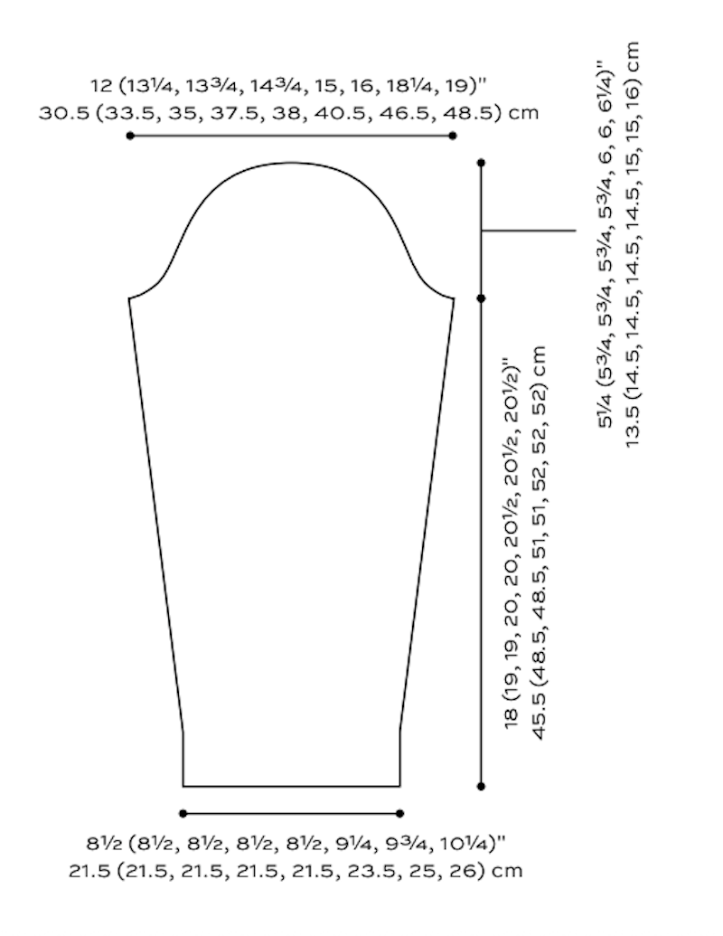 The garment schematic—a detailed sketch or illustration of the garment shape, marked with all the key measurements—is part of your decision process, too. It can answer questions that might not be clear from the photos, showing more details of the garment structure and shape, and giving the dimensions in detail.