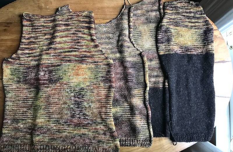 Which means these “all in one” shapes end up having to be worn sized to fit our largest area, which means they can be too big on less large areas. Seamed garments, with the various pieces worked separately, can more easily accommodate bodies that need different fits in different areas.