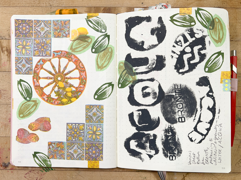 Stamp straight onto the page to mark special moments: I decorated the pages of my journal from the day we visited the pistachio farm with stamps straight onto the pages and also stamps on tissue paper.