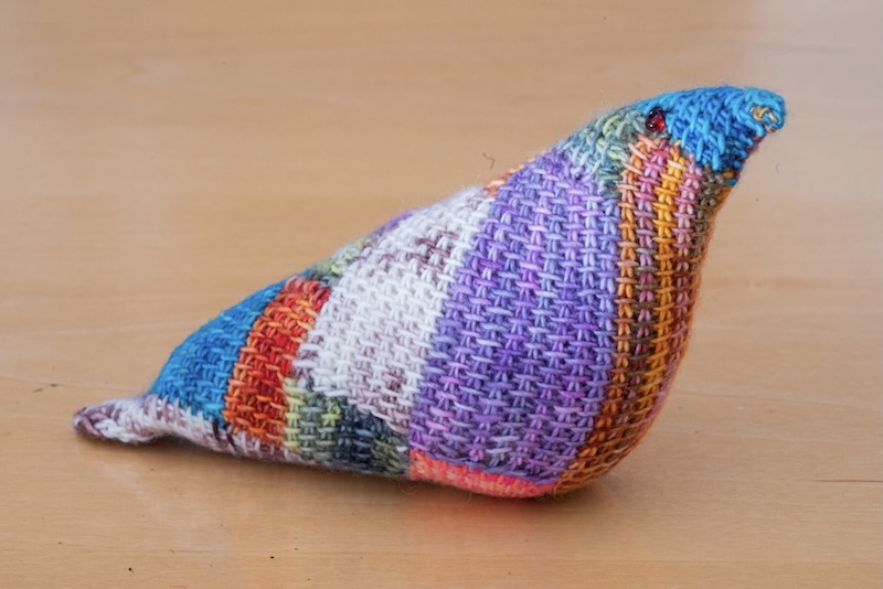 Because when you have a pile of finished swatches lying around, you could turn them into a patchwork throw or dollhouse rugs. But you could also make birds.
