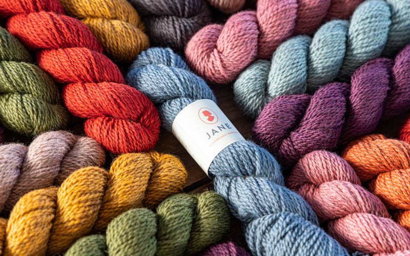 It’s Nua Sport, the yarn designed by Carol herself. It’s a special, rare yarn, so we’re particularly excited to have a new batch of all 17 shades.
