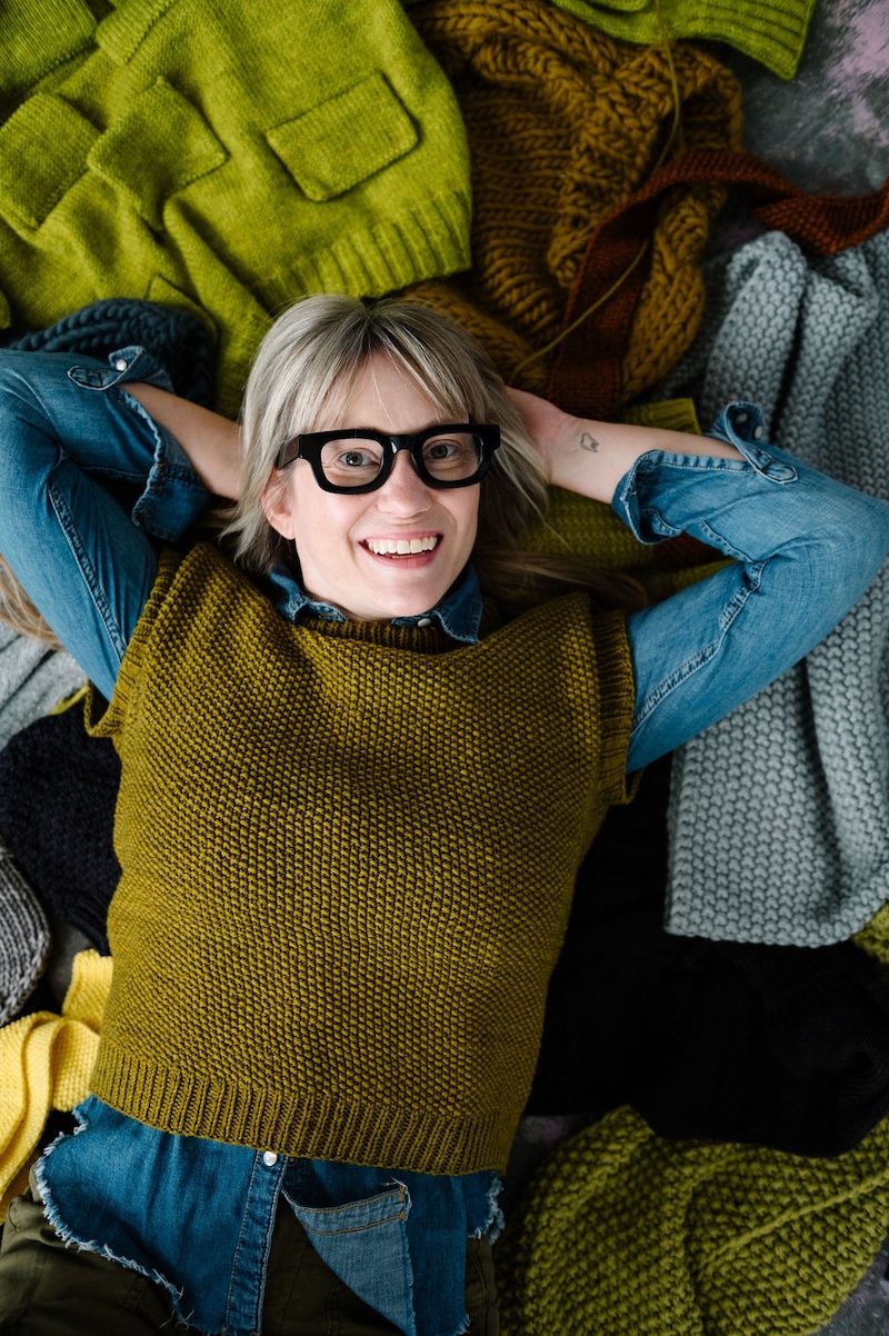 My newest design, the Strange Brew Vest, is one of those seed stitch moments that just clicked. I knit it in my all-time favorite shade of chartreuse—that bright, fresh, mood-lifting color that somehow works with everything. If yarn could glow from within, this is what it would look like.
