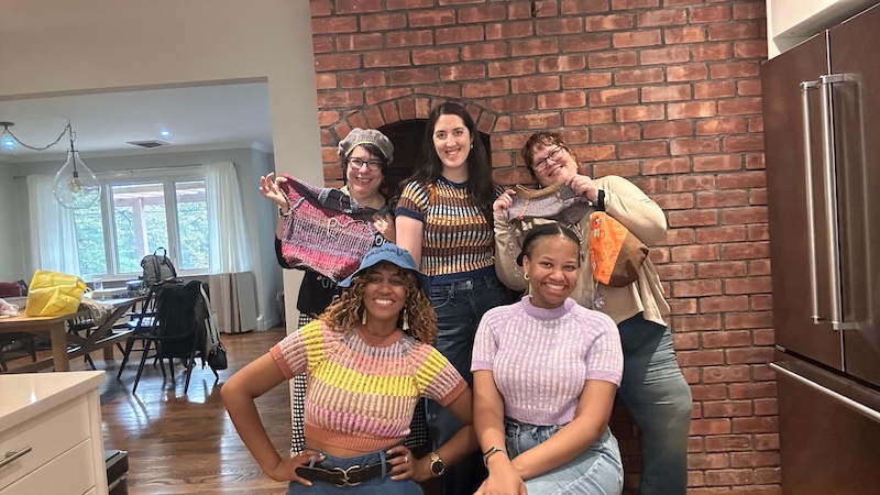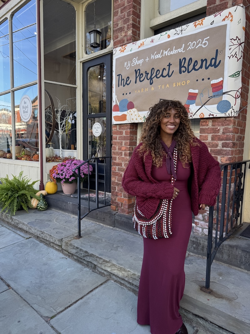 By the time I got back to our Airbnb, the hat was complete. It’s not perfect or fancy, as I was losing count every few rows when I would run into a lovely fiber friend or stop to ask a stranger what pattern they used. The pop of blue sparked some joy—but not quite enough.