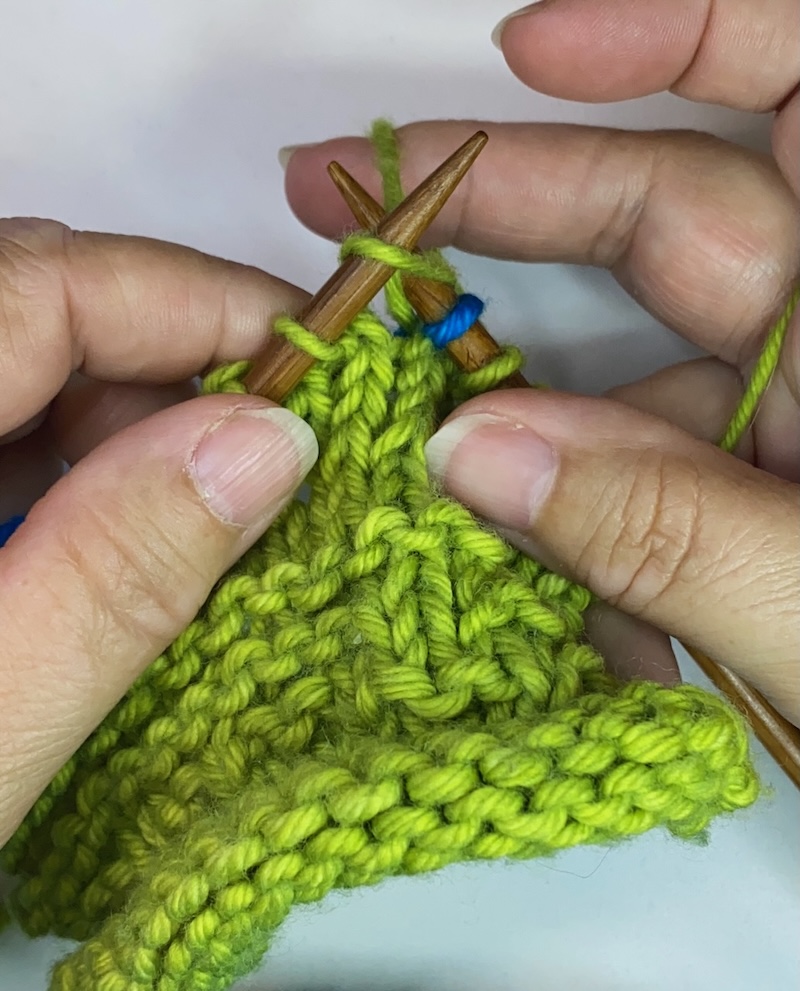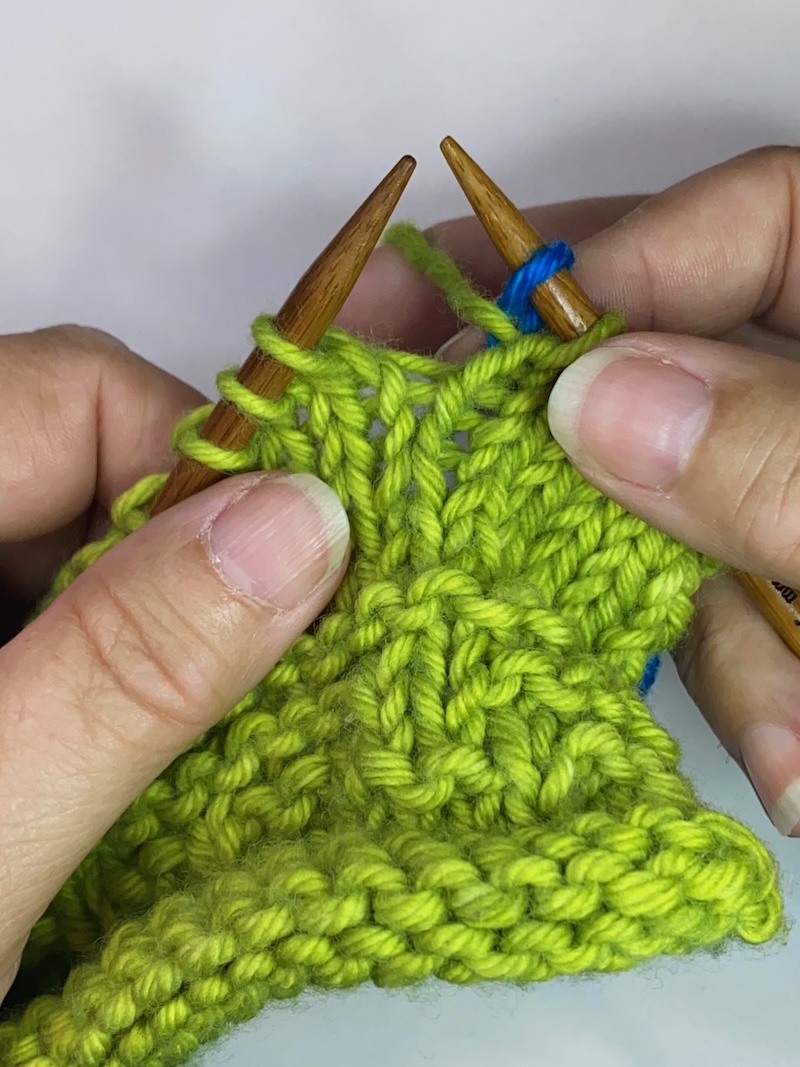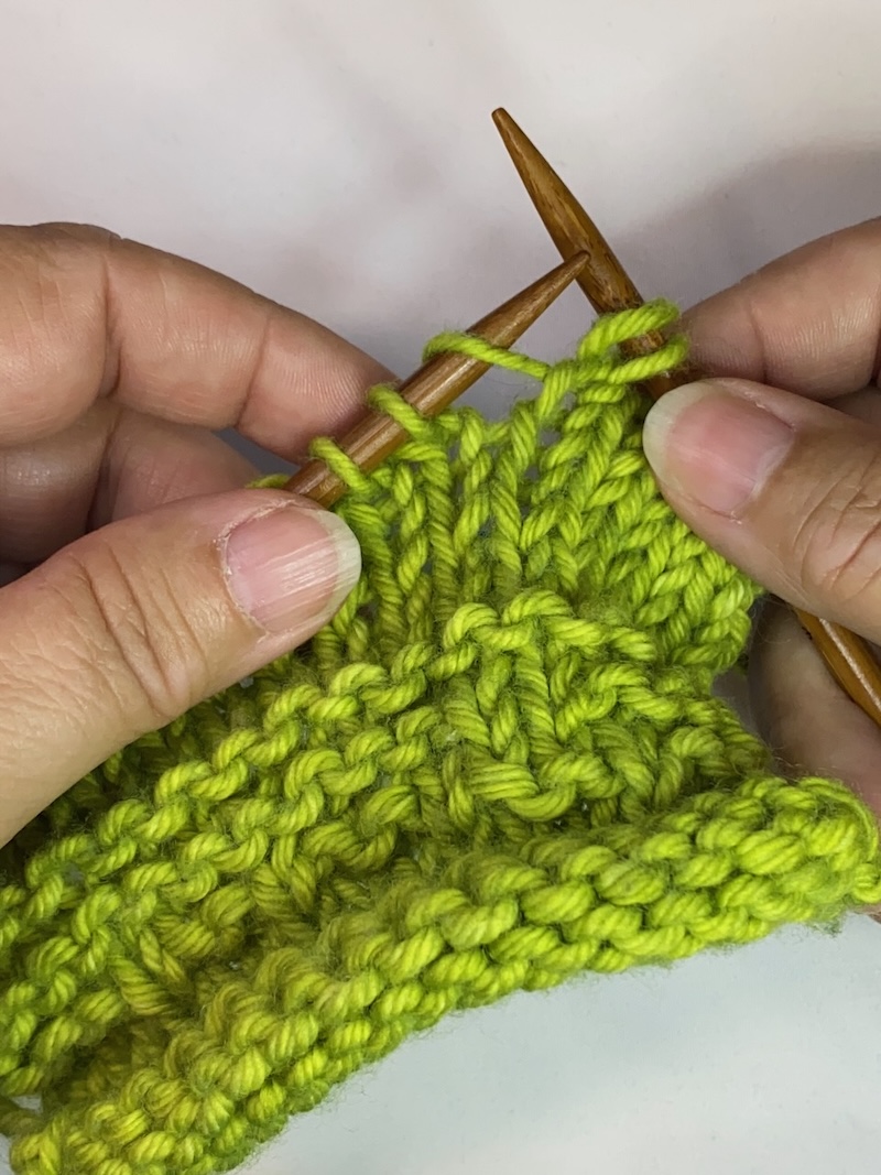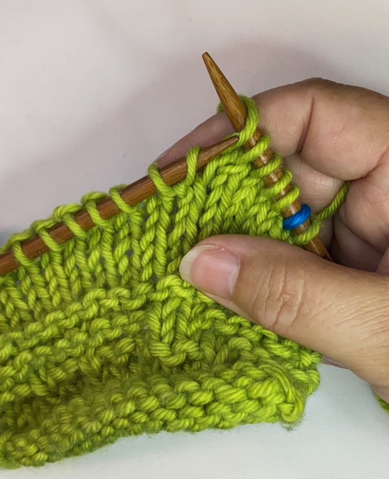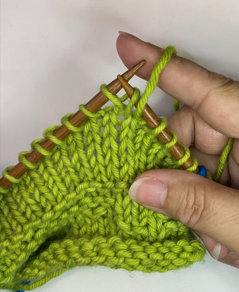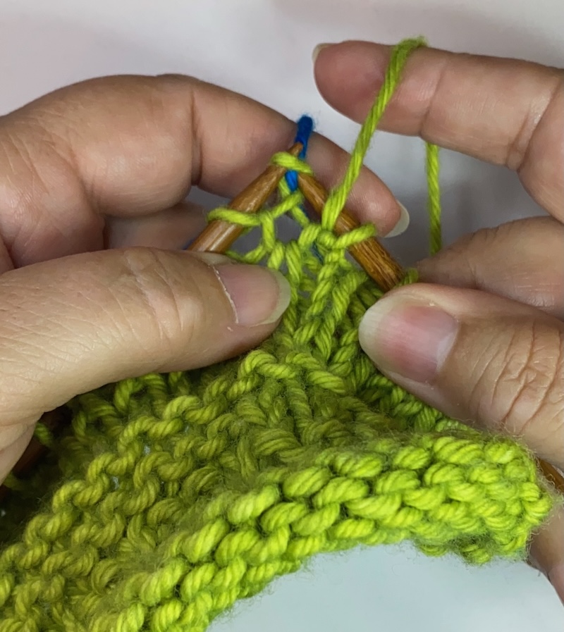To do this, you’ll need to start your ladder with an increase that’s connected to the fabric. One way to do this is with a right-lifted increase. When you reach the place you want your first ladder to be: