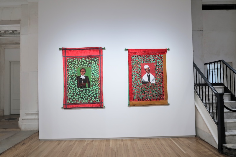 I took the elevator up to the second floor, and when the doors opened I was struck by what would be my two favorite works from the exhibition: “Coming to Jones Road Part II #3 Aunt Emmy and Baby Freedom” and “Coming to Jones Road Part II #4 Aunt Emmy and Uncle Tate” both acrylic on quilted fabric from 2010.