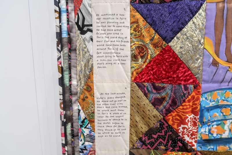 In the gallery, her “Window of the Wedding” paintings from the early 1970s were placed on the opposite side of the room from “Jazz Stories” and I found it fascinating to see the beginnings of Ringgold incorporating fabric as canvas compared to the full quilts I had just seen around the corner.