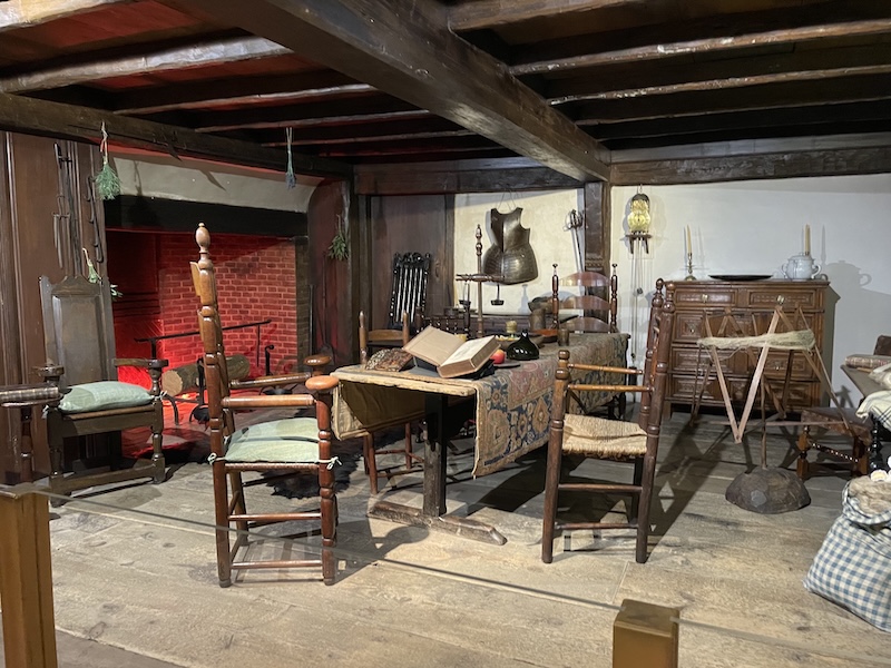 Now, let’s get back to chairs. Do you notice anything about the seats of the chairs in the 17th century room? One of them has a rush bottom and two have simple cushions.