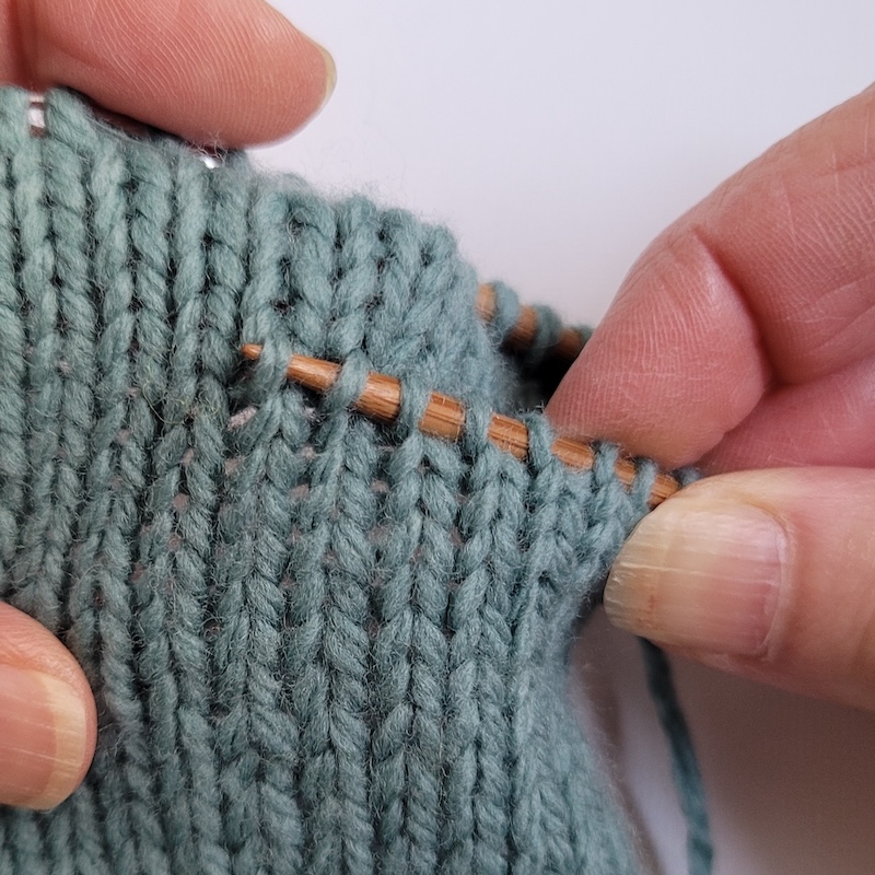 This is an inexact science: Don’t worry too much about the wonky edge stitches, it doesn’t really matter if you’re getting the right or left leg of the stitches, and it’s not a problem if you seem to have one too many or too few stitches. Do the best you can.
