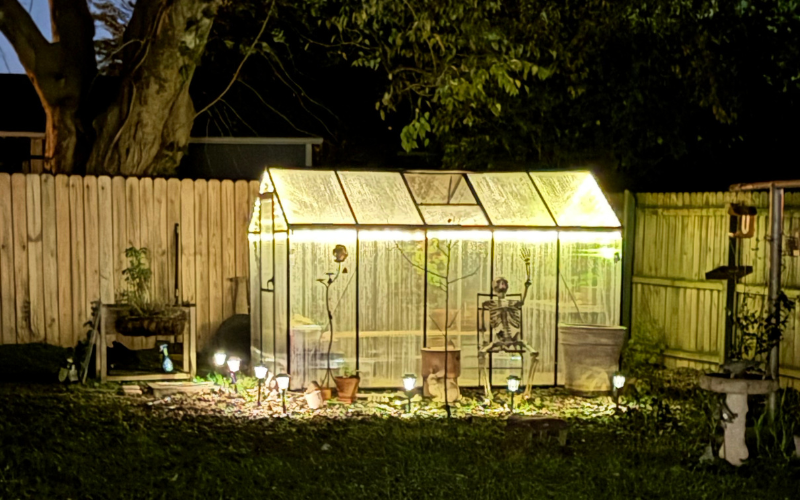 I just got around to hanging up twinkle lights just in time for Halloween (along with our greenhouse skeleton, who may be a year-round addition) and I can already say that my hoya has been thriving, my bulbs are happily nestled and waiting to be planted around the bird bath, and I’ve managed to keep my Nepenthes Pitcher Plant alive and well.