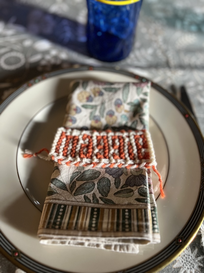 • The folding chair and card table comments had me laughing this morning as my sister texted me late last night to bring a card table (more people than usual are gathering at her house), then texted again this morning to say she found where she stashed her extra table leaves so doesn’t need the card table. I admire your overall energy level, Kay, to be able to host Thanksgiving and take on a lovely placecard project. Happy Thanksgiving to all who celebrate!
