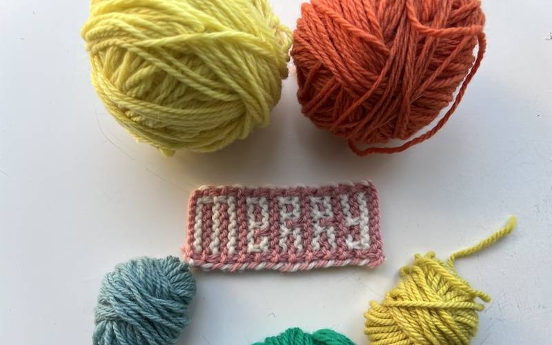 This wee pattern charts out Merry Xmas and Happy 2026, ready-to-knit for all your tree garland, package labeling, and general handknit holiday decor needs.