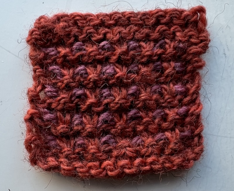 I volunteer to knit as many swatches as I can, and catalog them here. Bookmark this page (here’s how), and watch the colors spiel as the days go on.