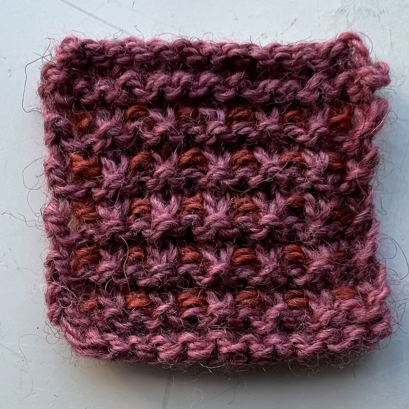 Could I go smaller? Yes! Introducing: the 1/8 swatch, a 2 x 2 inch little beauty that takes 15 minutes or less and leaves plenty of yarn for the main event.