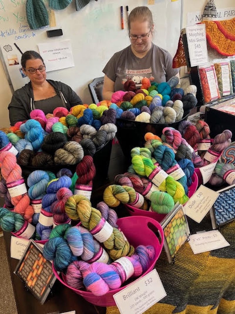 trunk show with two local vendors, Sunrise Grove Artistry and Schmutzerella Yarns.