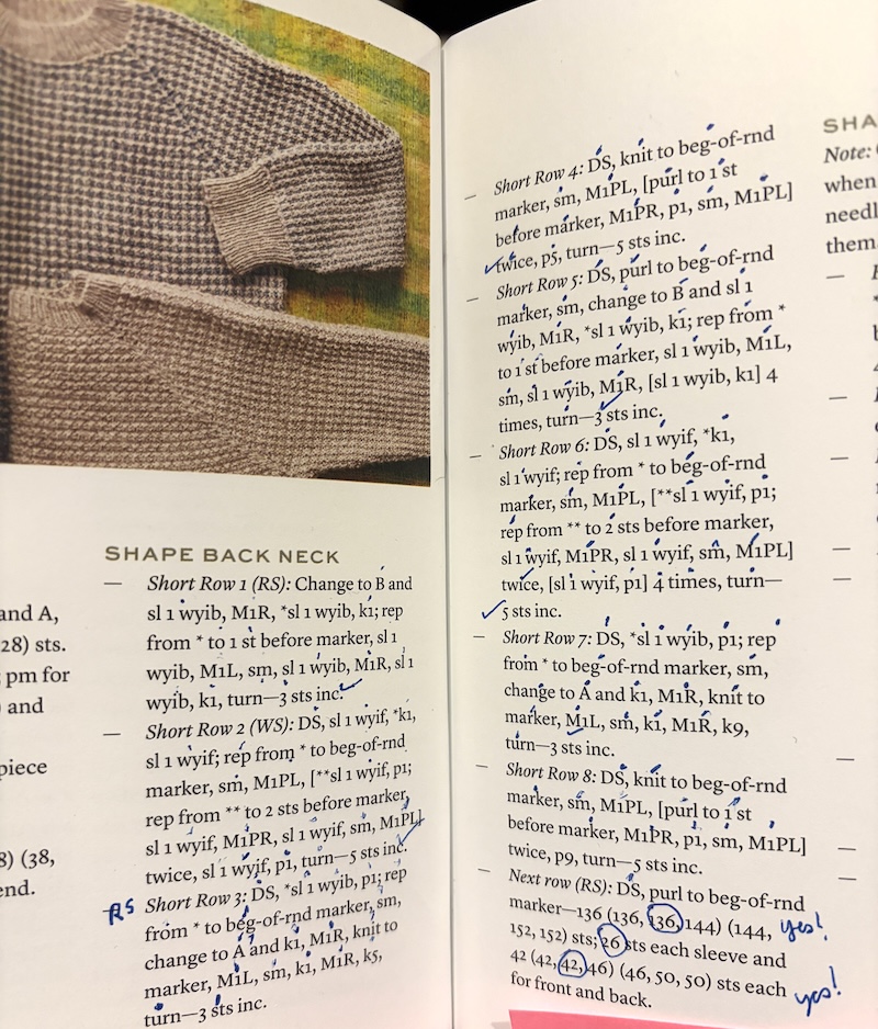 My suggestion before embarking on the short rows would be to re-write the instructions so you have each row on a separate line — much easier to read and mark off in this format. Ask me how I know.