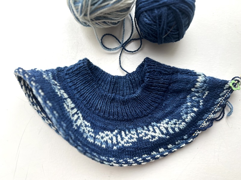 You’re right, it is so, so pretty. You’ve got this. You’re cranking along, already. I’m working on the Ribby Swing dress, in sock yarn. I’m the fastest knitter I know ( not bragging, just stating a fact), and it’s been about six months now. Each row of the skirt takes me at least an hour (it’s voluminous), in sock yarn on size 4 needles (because the 3’s broke, and I didn’t have another). I see the finish line in the distance. Ten more rows, then the sleeves. Color work, to me, seems to go faster, because you’re seeing the different patterns, and it’s exciting to see them come along. So you will enjoy this knit, no matter how long it takes!