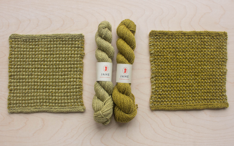 - Jane by Modern Daily Knitting [1.75 oz (50 g) skeins, each approx 125 yds (114 m), 75% Falkland wool/25% Masham wool]: Solid Color Version 9 (10, 12, 13) (15, 16, 17) skeins Yorkshire Two-Color Version 5 (6, 7, 7) (9, 9, 10) skeins Yorkshire (A) 4 (5, 5, 6) (7, 7, 8) skeins Bluebell (B)