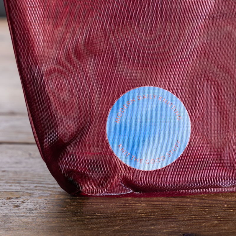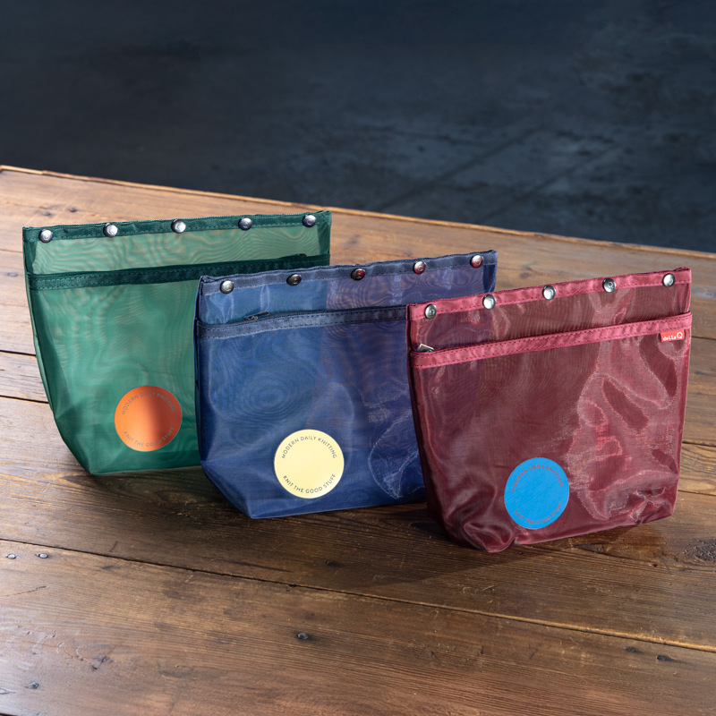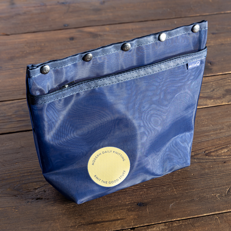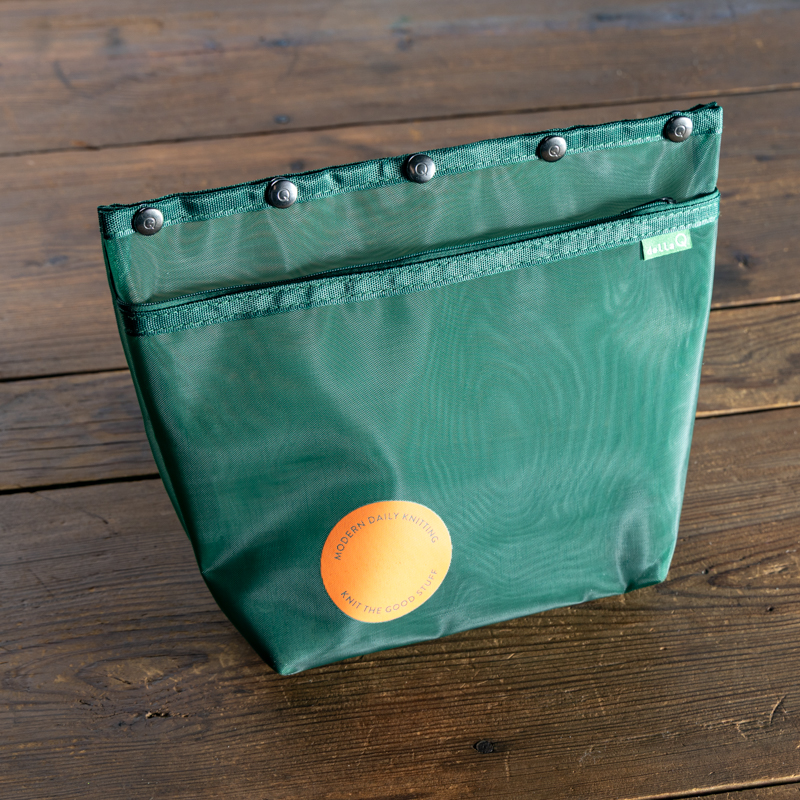 MDK exclusive colors! The snaps leave space for your working yarn to travel safely for knitting on the go. The mesh pocket lets you see if you have all you need.